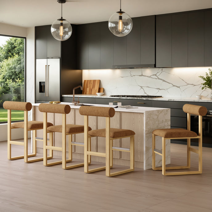 Looking to upgrade your kitchen or dining area? These armless bar stools blending elegance with comfort that enhances your dining experience. Made from wooden frame boasting a classic look that ensures durable support, with upholstered seat and back adding comfort. Its sled base completed with metal-plated footrest in a black or chrome finish, making the bar stools a stylish addition that perfectly complements your breakfast nook or kitchen island.