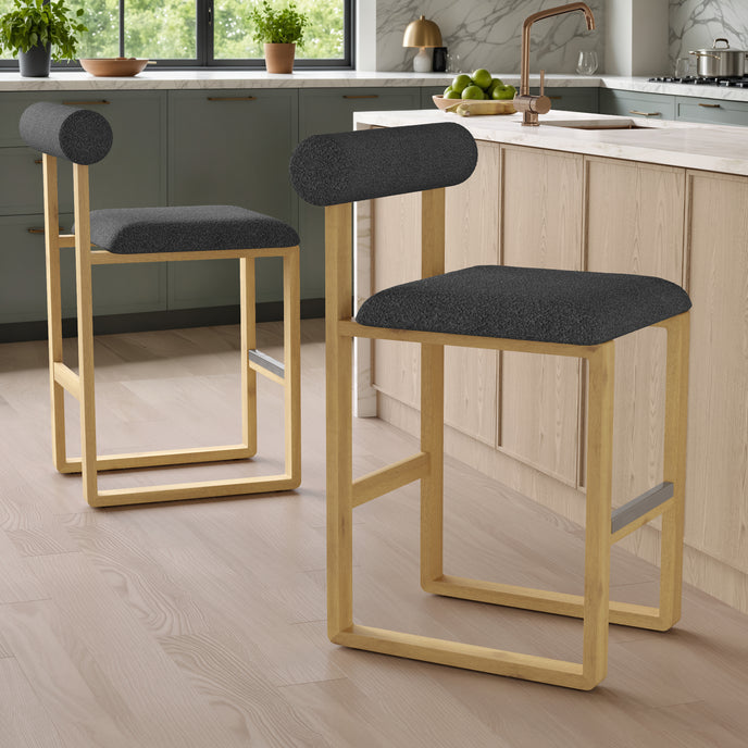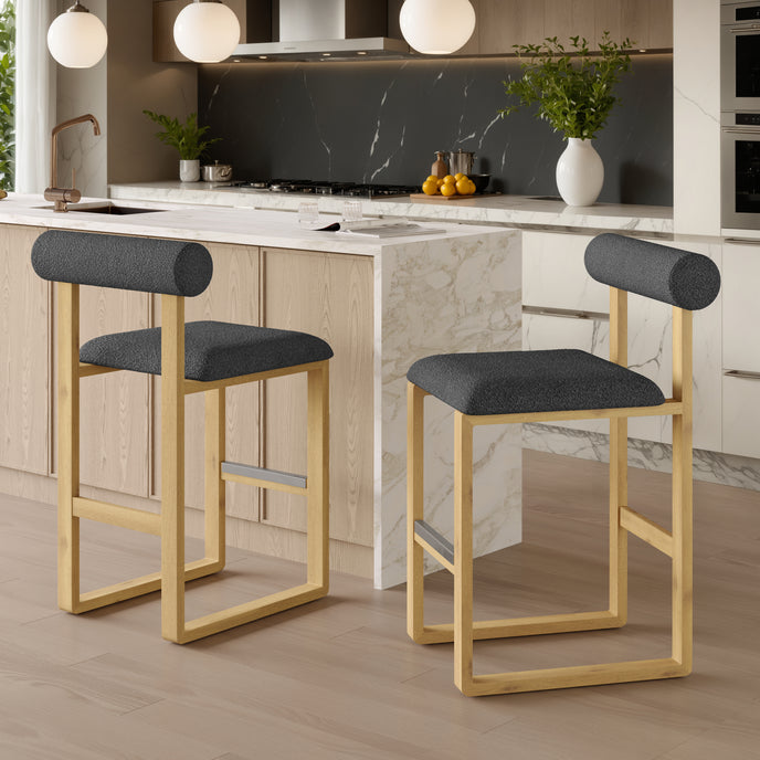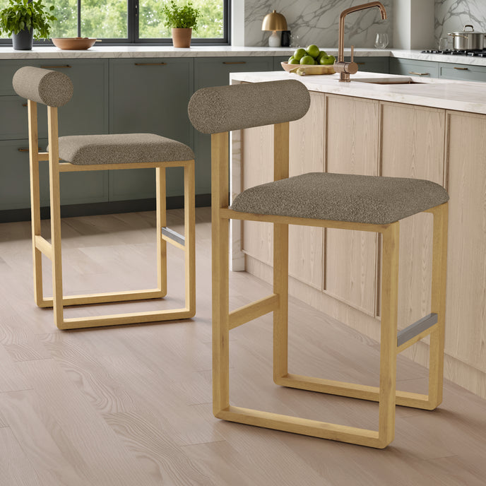 Upholstered Wooden Counter / Bar Stools (Set of 2)