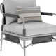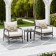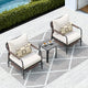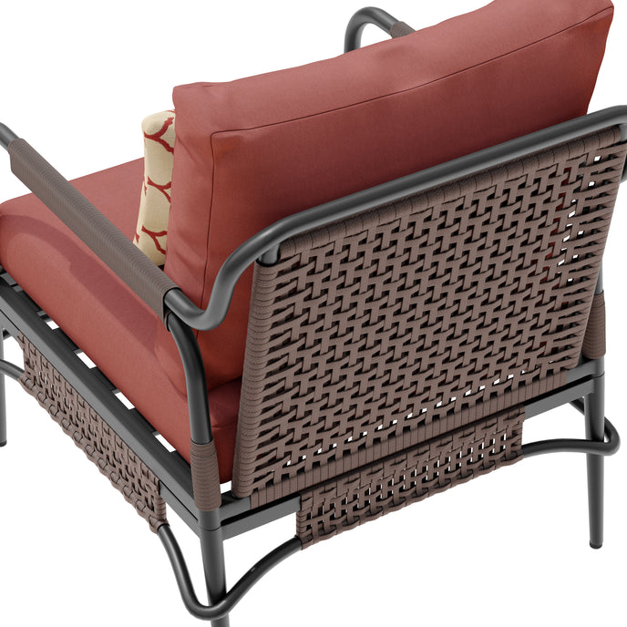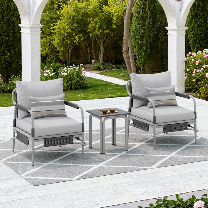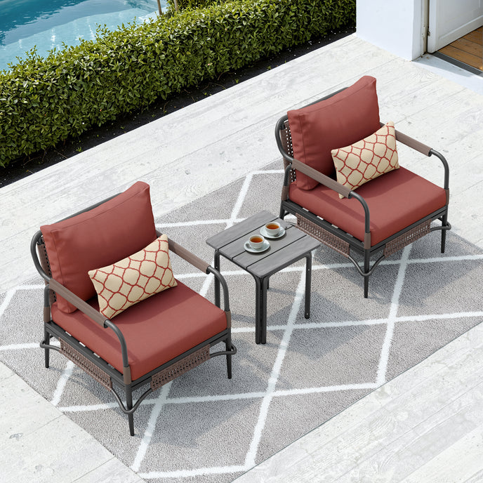 Create a cozy and stylish outdoor retreat with this Aluminum Club Chair Set. Designed for durability and relaxation, this 2-person seating group featuring a tubular frame constructed from aluminum that is both sturdy and rust-resistant. The chair backrest and armrests are adorned with resin wicker for a sophisticated look, while the side table with plastic-wood slat top offers convenience for holding beverages. With included cushions and Sunbrella toss pillows, this set is the perfect combination of comfort and charm for your outdoor space.