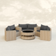 Bring style and comfort to your patio or backyard with our 6-person outdoor sectional seating set. Designed for relaxation and entertainment, the set featuring semi-circle shape comes in 3 curved benches, 4 trapezoidal side tables, and a round coffee table offers versatility to seating arrangement. Made from steel frame and resin wicker to withstand outdoor elements, completed with seat and back cushions that enhances your seating or lounging experience. Plus, the side tables can be used as armrests, making this set perfect for creating an outdoor retreat.