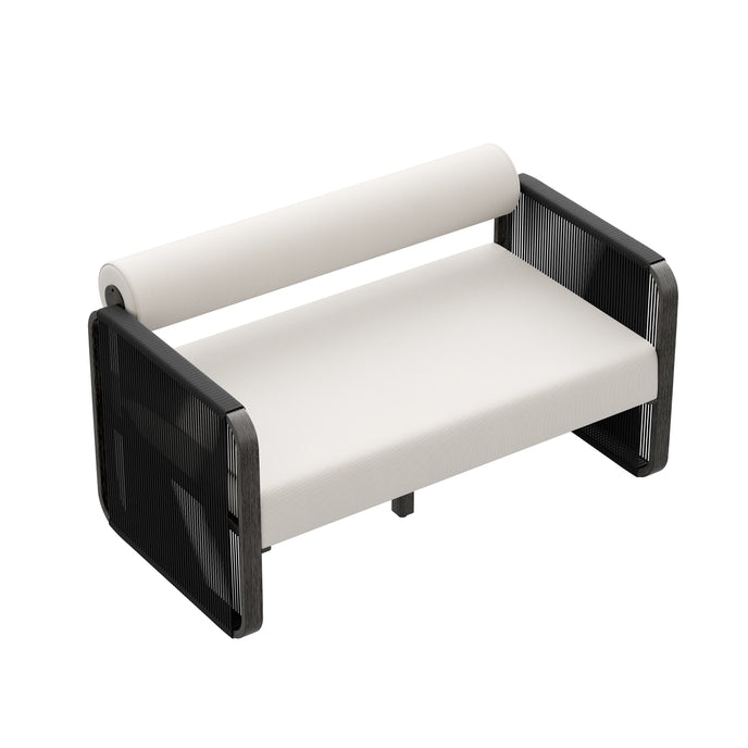 Enjoy your outdoor leisure time in style and comfort with our elegant loveseat, made with rust-resistant aluminum frame in square shape for a modern look, enhanced with wicker accents adding a touch of sophistication while ensures durability. Foam-filled seat and back upholstered with Sunbrella engineered for easy maintenance offers unparalleled comfort. Whether you' re lounging with a book or enjoying a cocktail with friends, this loveseat is a must-have for outdoor relaxation.