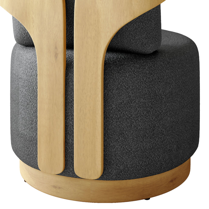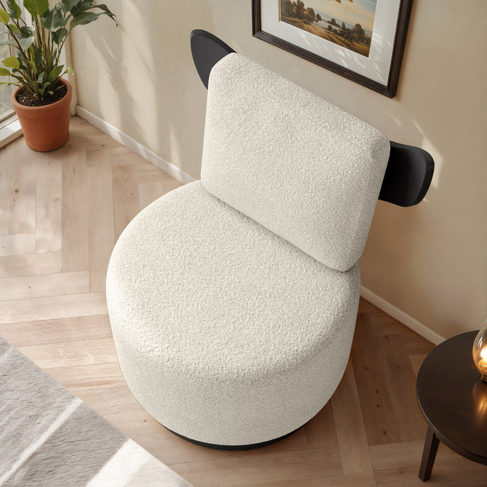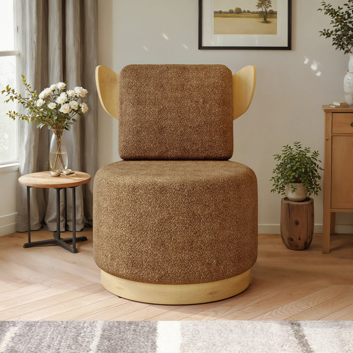 Upgrade your home office with our swivel chair, designed to enhance your seating experience with style and comfort. Featuring a round seat and rectangular back with foam-filled cushion ideal for unwinding or relaxing after a long day, accentuated by its wooden Wingback design gives the chair a classic and elegant look. Enjoy the convenience of its 360° swivel base that allows for easy movement, making this swivel chair a must-have to redefine your living space.