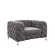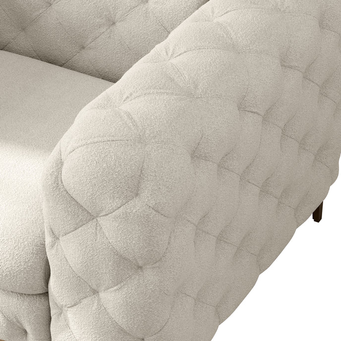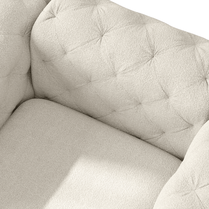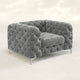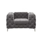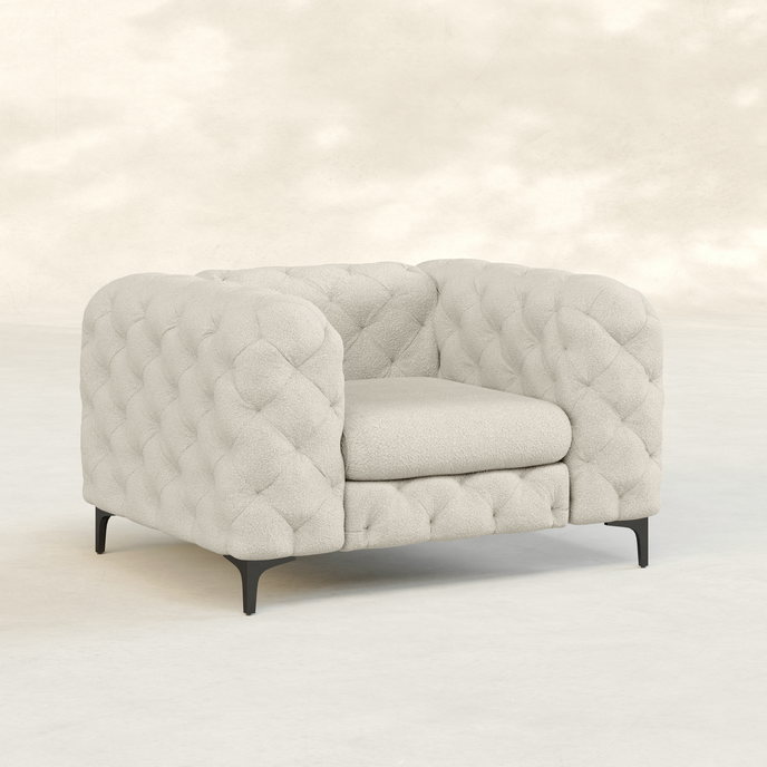 Elevate your seating or lounging experience with style and comfort of this chesterfield chair. Made with solid wood frame, foam-filled seat and back featuring all-over diamond-shape stitch tufting details that exudes exquisite elegance, completed with metal legs that gives the chair a contemporary look and ensures durability. Transform your living space with this chic and timeless piece that will sure to impress your guests.