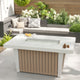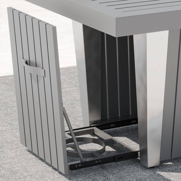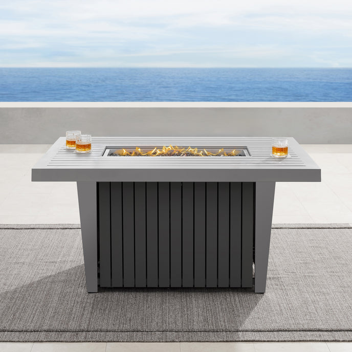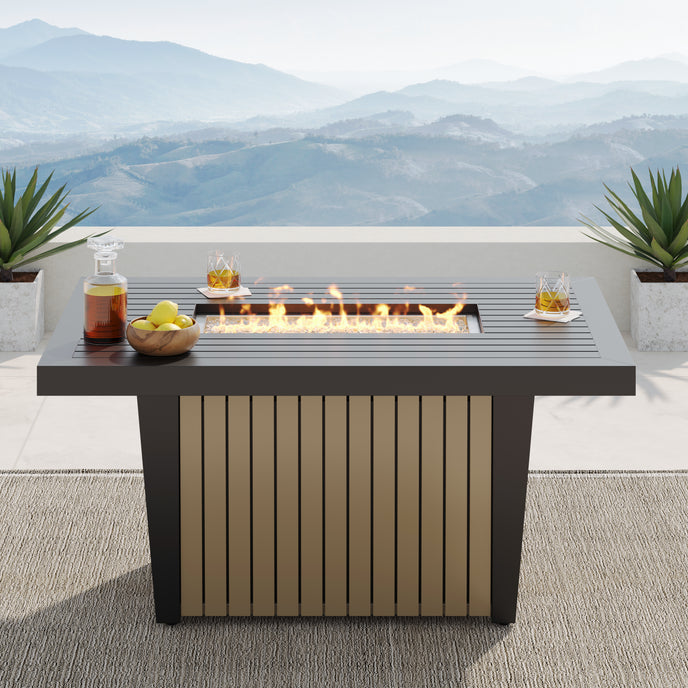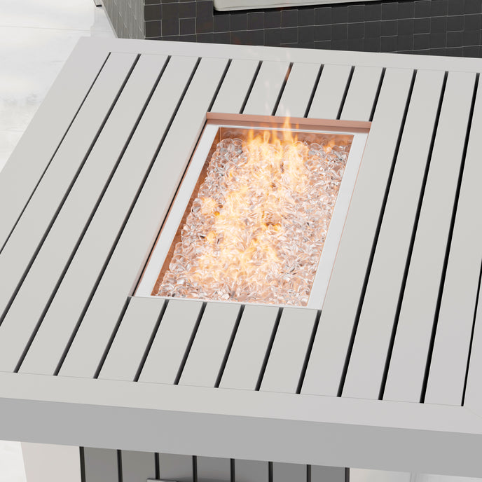 Elevate your outdoor experience with this stunning 55,000 BTU fire pit table, designed to bring warmth and an inviting ambiance to your patio or backyard gatherings. Crafted from powder-coated, slatted aluminum for a sleek, modern aesthetic, it combines durability with sophistication. Effortlessly ignite and control the flame with the convenient push-button and control knob, while a built-in sliding drawer conceals the propane tank (tank not included) for a flawless look. Complete with a matching fire bowl lid, this versatile piece seamlessly transforms into a table when the fire is not in use—perfect for stylish outdoor living.