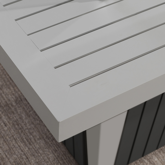 Featuring an aluminum slatted base in a pleasing gray color with contrasting stainless steel trim, the Soho fire table ties in with any surrounding natural elements. This sleek design will sure add a touch of luxury to your patio!